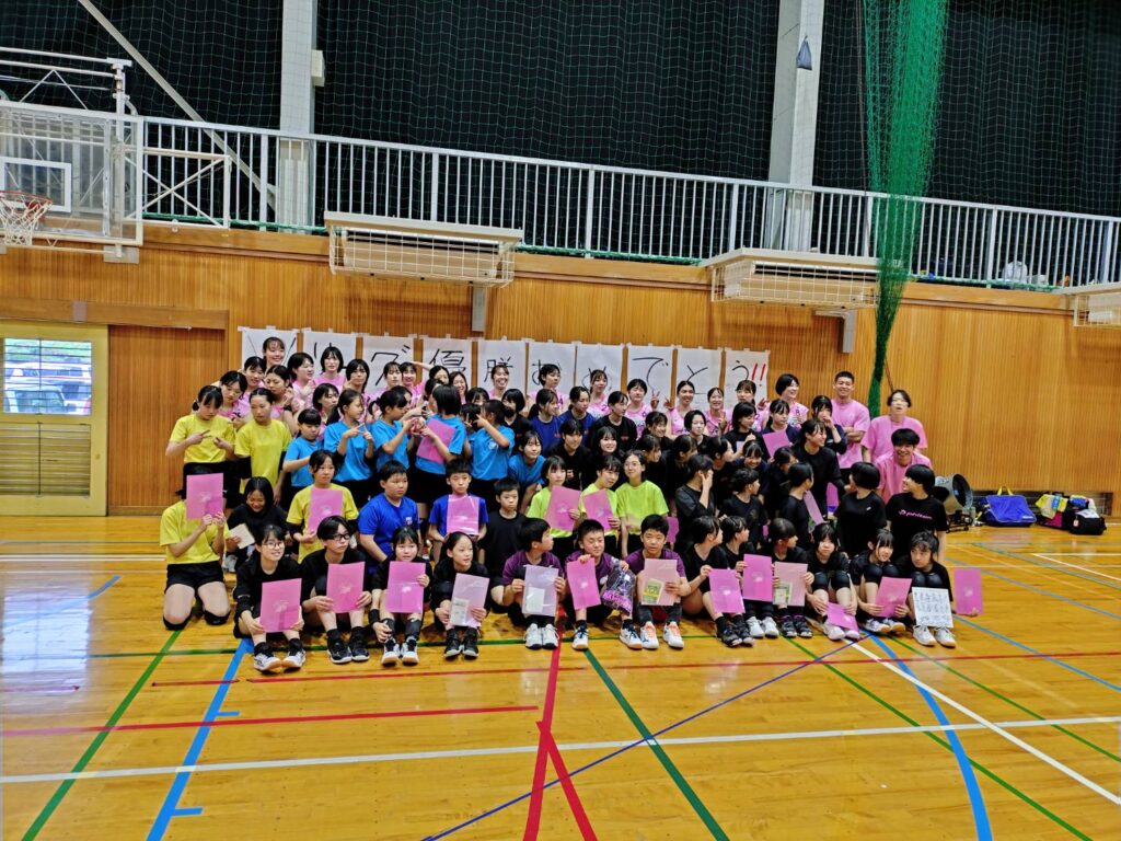 令和7年8月11日(月・祝)、下條中学校にて、飯伊地区の小学6年生と希望する中学生、59名を対象にバレーボール教室を開催しました。